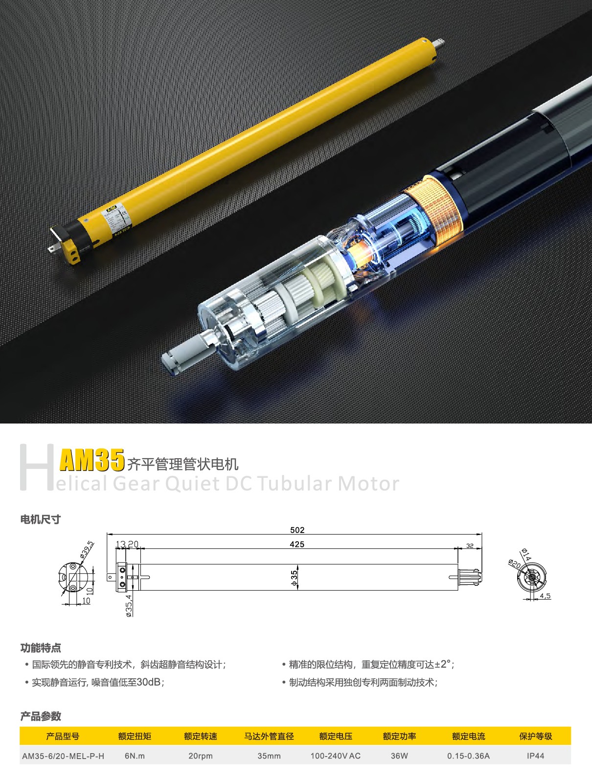 AM35 斜齒超靜音標(biāo)準(zhǔn)直流管狀電機(jī)